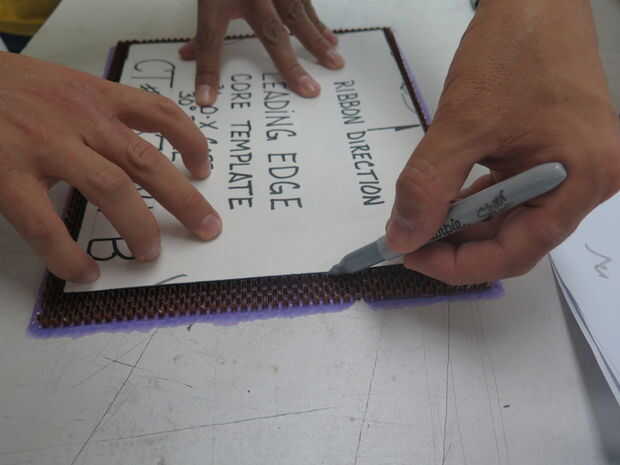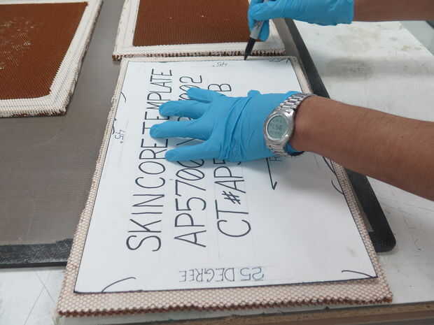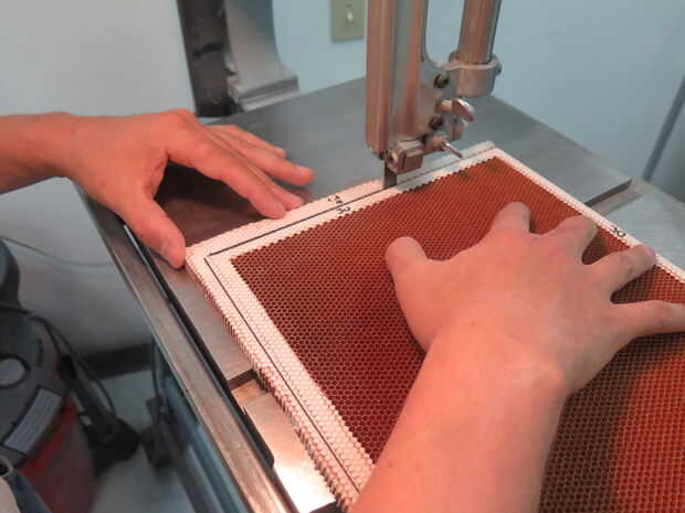 Ambos núcleos de nido de abeja se estabilizan y están listos para trabajar a máquina. Consultar planos de ingeniería y perímetro exterior marca de panal. Utilice una sierra de banda para cortar a tamaño.