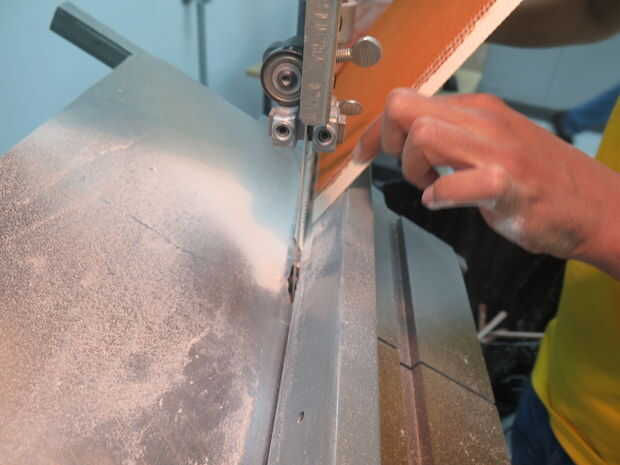 Conjunto sierra al ángulo apropiado y chaflanes de la máquina.