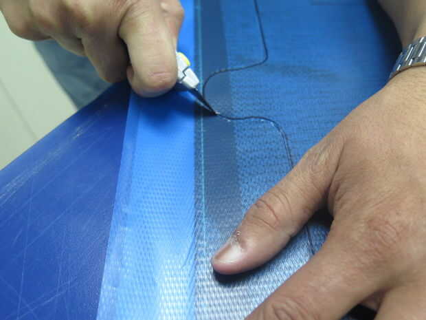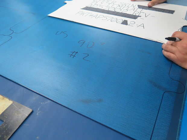 La aleta del avión utiliza 3 70 K tejido de fibra de carbono con resinas Hexcel F155. Utilice ingeniería dibujos o plantillas para cortar material necesario. Estamos utilizando fibra de carbono prepreg - viene preparado (impregnado) con la cantidad apropiada de resina. Prepreg contiene resina que está lista para curar, por lo que debe ser mantenido en un congelador (-10 F) para frenar la reacción de reticulación química. Tiene una vida útil limitada y tiempo por encima de congelación debe iniciar la sesión con cuidado.