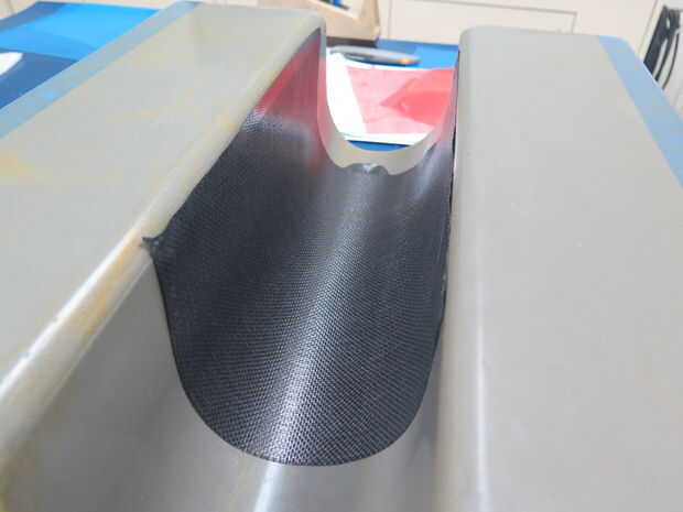 Coloque la primera capa en el molde preparado de vanguardia. Es muy importante trabajar el carbono en su lugar con los dedos o con un raspador de plástico. Sé que esto suena simple, pero esto puede ser un paso muy difícil que el fabricante apresurado omitir o no correctamente. Tómese su tiempo y asegúrese que el carbón sigue el contorno exacto del molde. Mira la parte de acabado ejemplo cuidadosamente examinar todos curvaturas y planificar en consecuencia.