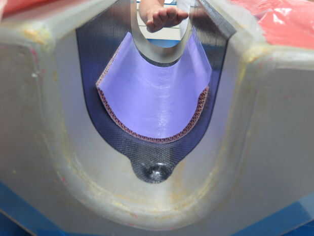 Coloque la base de panal con película adhesiva en el centro del molde y poner encima otra capa de adhesivo de la película. Tómese su tiempo para trabajar cuidadosamente la película adhesiva alrededor de la base de panal.