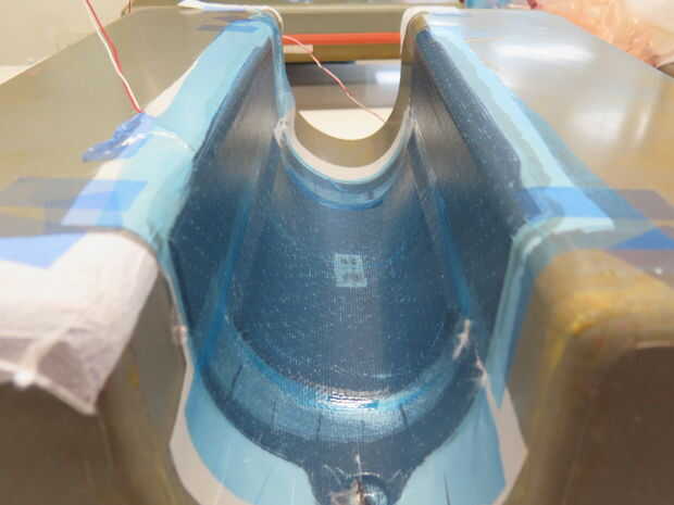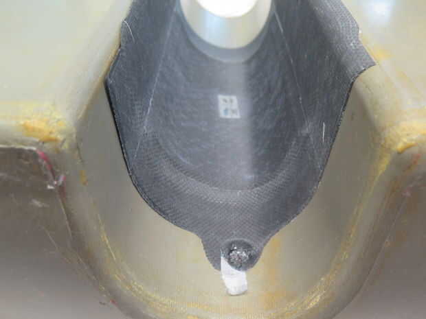 Esta nena se ve bien! Trabaja el carbono en lugar de una capa a la vez y citorreducción pagaron apagado... grande. Si no hacemos todo lo que trabaja el carbono las capas se separan como se aplica la presión. Esto se traduce en 'puente' (es decir, los laminados no se bien asentados contra el molde). Puente crea piscinas de resina porque los laminados fueron tirados fuera del molde y pueden resultar en una pieza defectuosa.