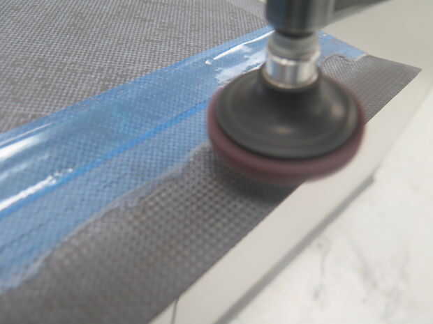 Hay tres opciones para la preparación de la superficie del compuesto para el pegamento - papel de grano arena 180 rojo Scotch Bright y chorro de arena.