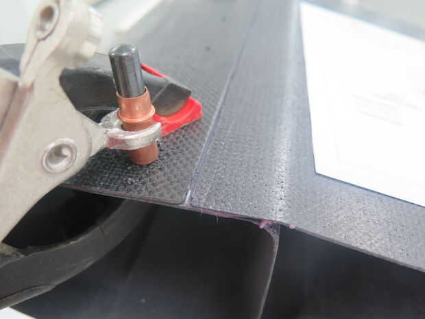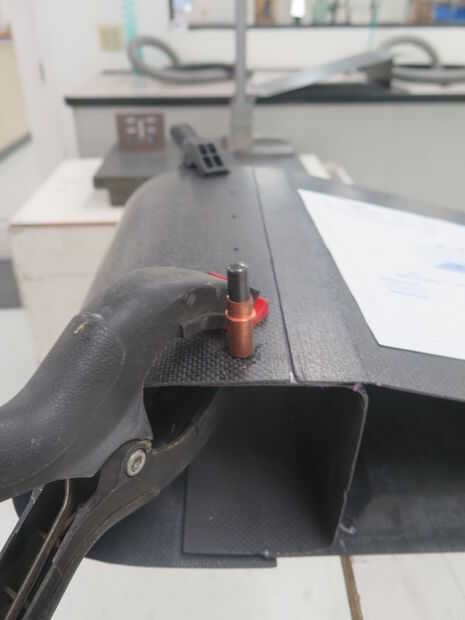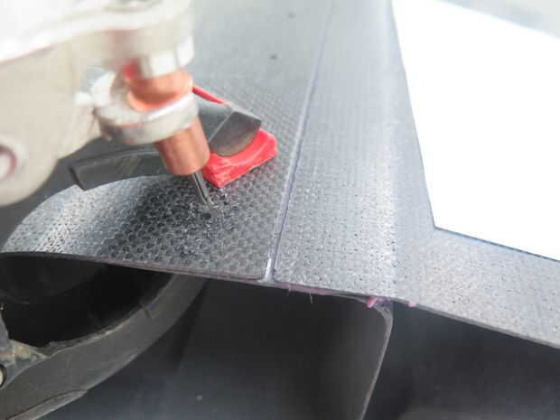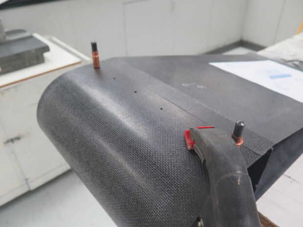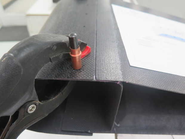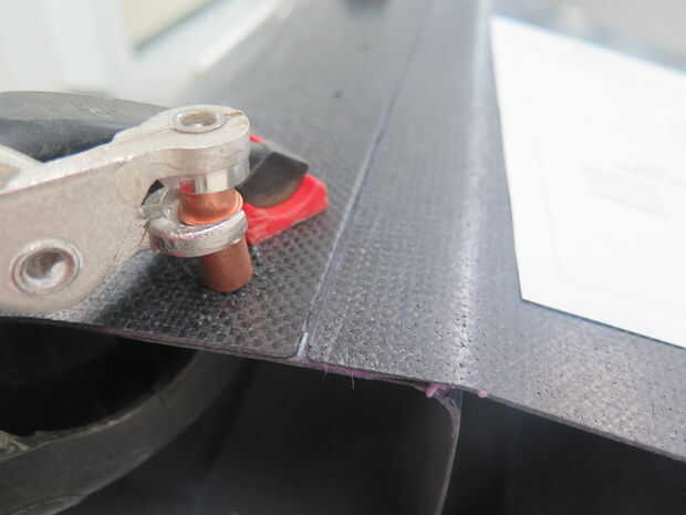 Alinee el borde de ataque con el borde posterior y empotrar. Utilice los agujeros en el borde de ataque para que coincida con los agujeros de taladro en el borde de fuga. Agarre de agujero uso abrazaderas para mantener todo peachy.