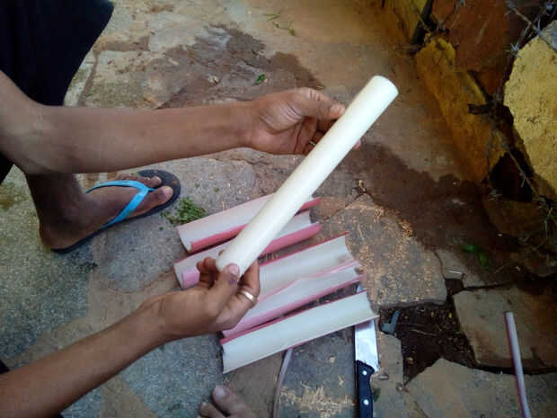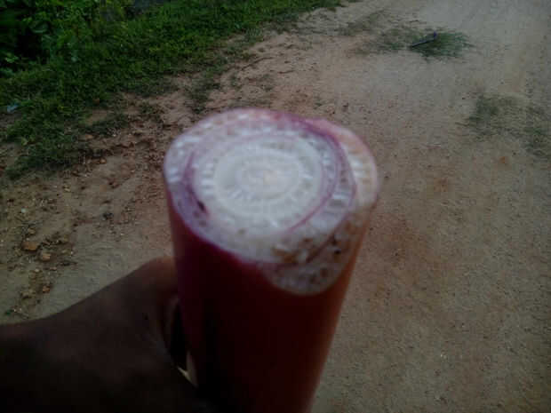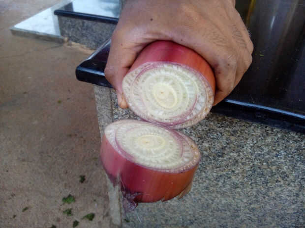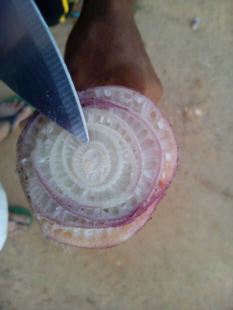 Como se muestra en la primera imagen, nos estamos apuntando a la parte central con un cuchillo. Sólo tenemos esta porción cilíndrica sabrosa y cómetelo! Así que pela de todas las demás capas
