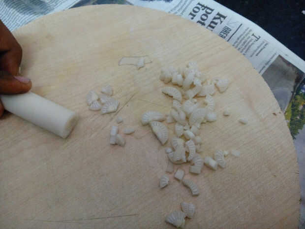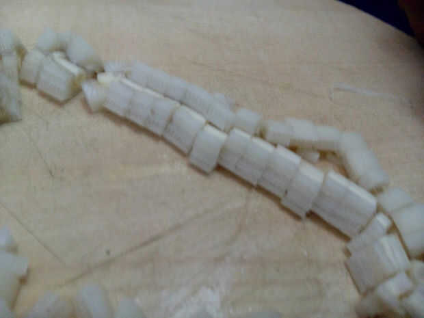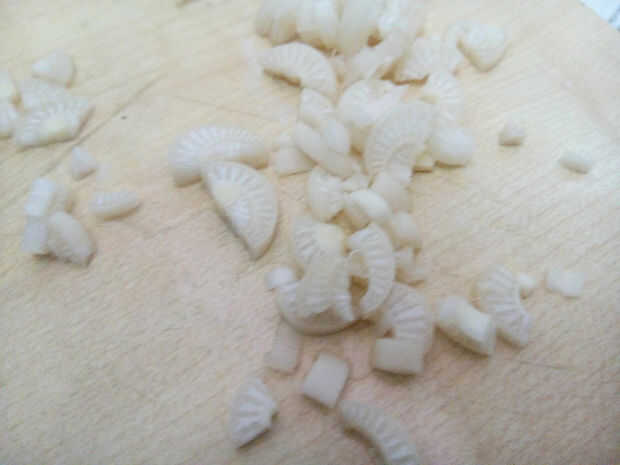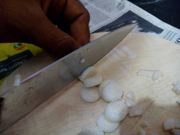 Usando el cuchillo de cocina, corte y lavado en agua para eliminar el líquido pegajoso.