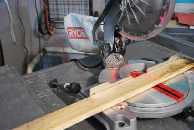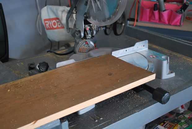 A continuación recortar el tablero con el 1 x 3. Cortar a medida. Estoy utilizando madera vieja de un proyecto anterior que había guardado en mi taller.