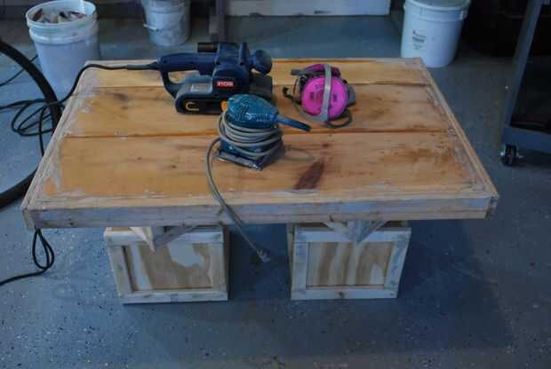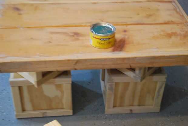 Los niños jugar mesa hecha fuera de una vieja mesa de café.