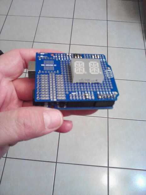 Después de insertar los pines en el hardware de Arduino, coinciden el PCB con los inserta en el Arduino y luego soldarlos.
