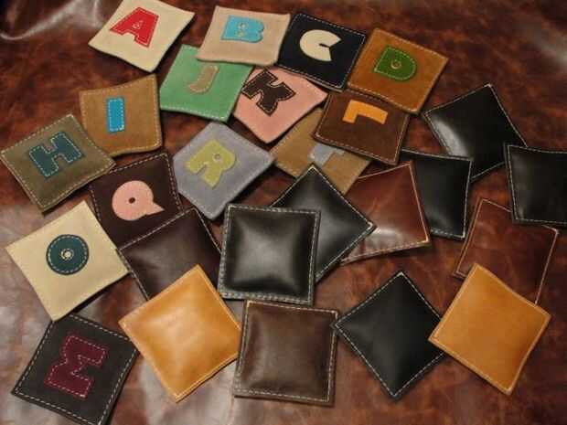 Mi hijo casi dos años ha estado obsesionado con el alfabeto. Canta la canción en su cuna como él se cae dormido, canta en el orinal e incluso intenta reemplazar el alfabeto con números como canta. Es que trabajo con cuero natural tuve que hacerlos.