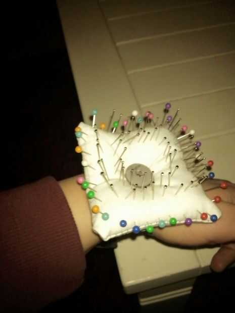 este brazalete alfiletero es mi accesorio de costura favoritos! Sólo correa en y conseguir coser ocupado.Va donde usted vaya, así que usted no se encuentra frustrado cuando usted está de pie allí sosteniendo un espacio para el perno sólo para descubr