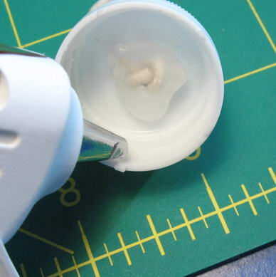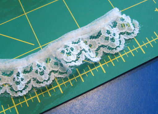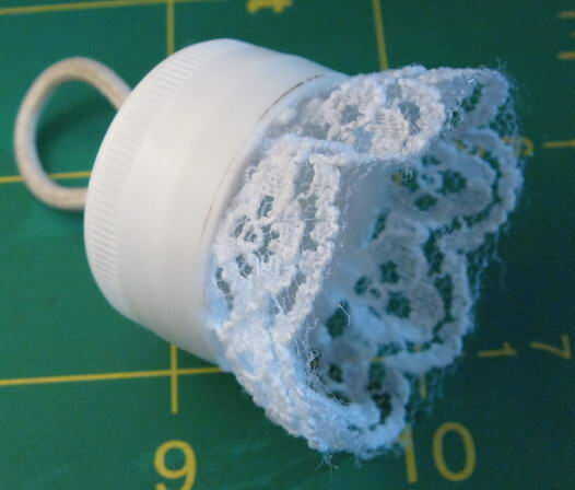 Agarrar un pedacito pequeñito de encaje, esto es opcional pero se ve más bonito.  Aplique una tira de pegamento caliente en el interior de la tapa.  Pegar el cordón en el interior.