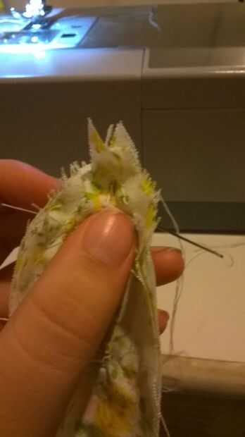 Coser el cuerpo pedazos juntos revés hacia fuera. Deje aproximadamente una pulgada de cada extremo, que hace más fácil coser. Coser los ojos antes de coser la primera pieza a la última pieza. Una vez que están todas cosidas, mano coser la parte superior.