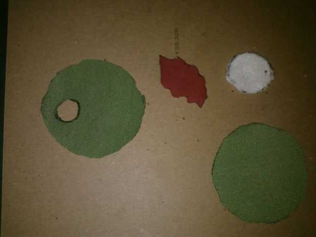 En primer lugar crear dos círculos gemelos (sobre el tamaño de su puño o Palma) y en una de las copias que hiciste, corte un pequeño agujero (utiliza el tamaño de mi rueda de hilo cosita para medir esto) en la parte superior de cada lado (según el lado que desee, se trata de los ojos saltones)