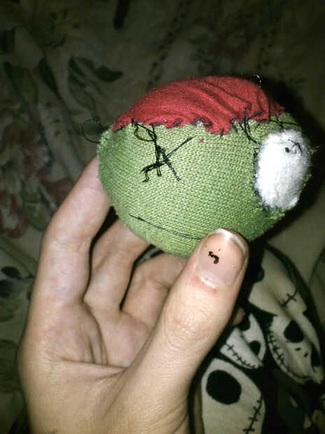 Ahora cosa en el cerebro sobre la costura desordenado y hacer incluso más complicados costura al coser, esto puede crear los pelos muertos de su peluche de zombie.