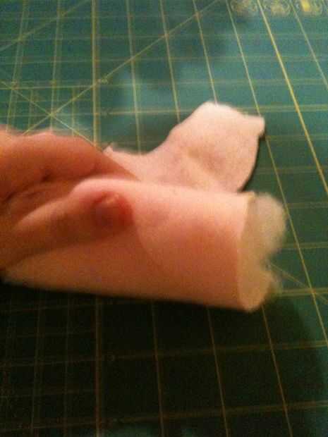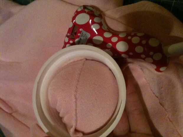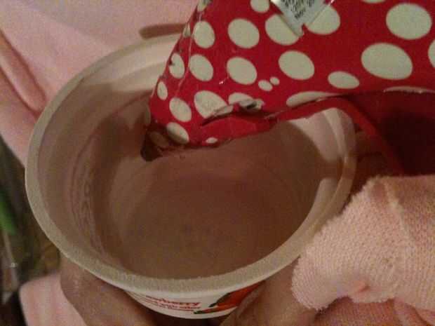 Coge un puñado de relleno y situado en el centro del interior de la tela. El material y el relleno para arriba en un cilindro como el tubo del rodillo y doblar por la mitad. Otra forma de hacerlo es trabajar alrededor y hacemos una bola. Esta parte es difícil, y le sugiero antes de hacer la forma del cojín que tienes tu pistola de pegamento caliente todo lista para ir sentado a tu lado. Tienen forma de cojín y están agarrando firmemente en su mano, Aplique pegamento caliente en el recipiente de yogur y pegar la parte inferior de la almohadilla que está abierta hacia abajo en la cola. Empuje hacia abajo y Aplique pegamento en los bordes alrededor de la almohadilla. Empuje hacia abajo una vez más y asegúrese de que el cojín se pega bien.