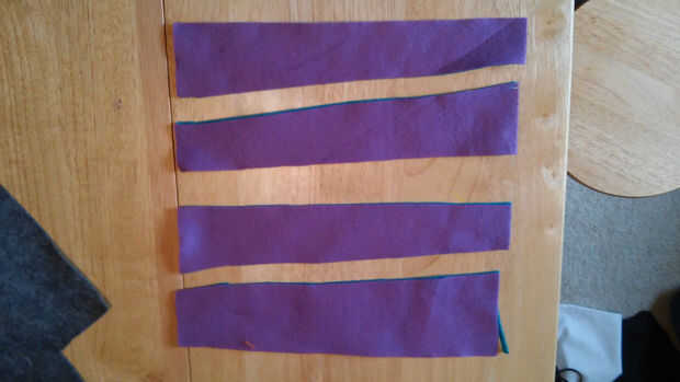 Para obtener la forma superior de Magdalena corté las tiras en un poco de ángulo a un lado. Un lado de la tira mide cerca de 1" y el otro de 1 3/4".