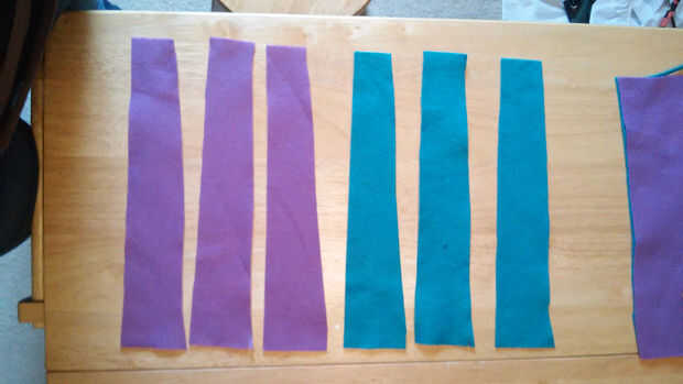 Empecé por cortar las piezas que necesitaba para hacer el alfiletero. Necesité 3 tiras de cada color.