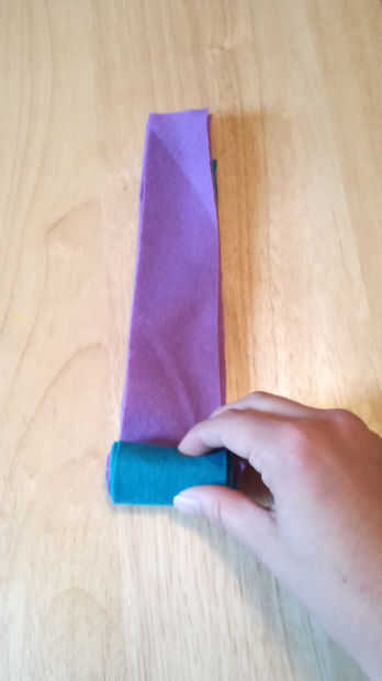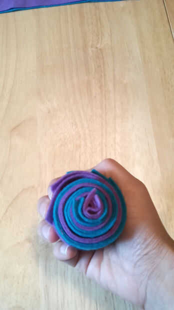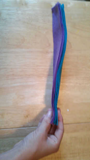 Después cortar las piezas coloqué todas las piezas en un montón y entonces rodó a la tela en la forma de la Magdalena.