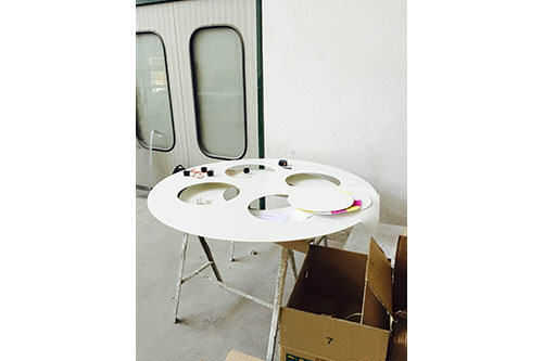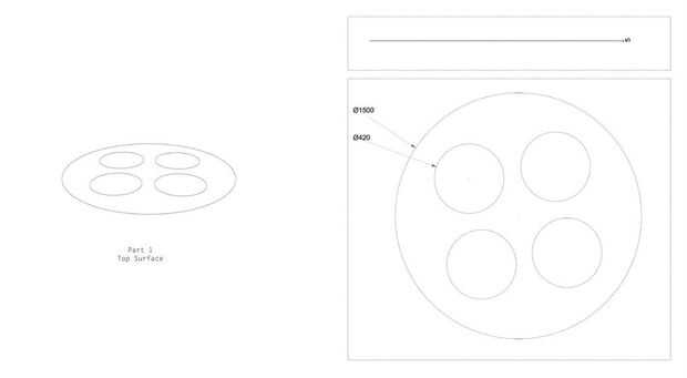 2. Coloque la superficie de la madre en la base dejando las 4 cavidades de disco separado abierto.