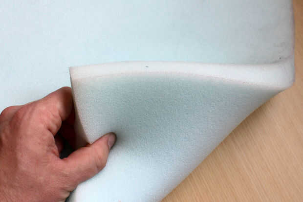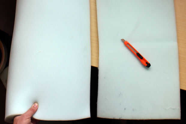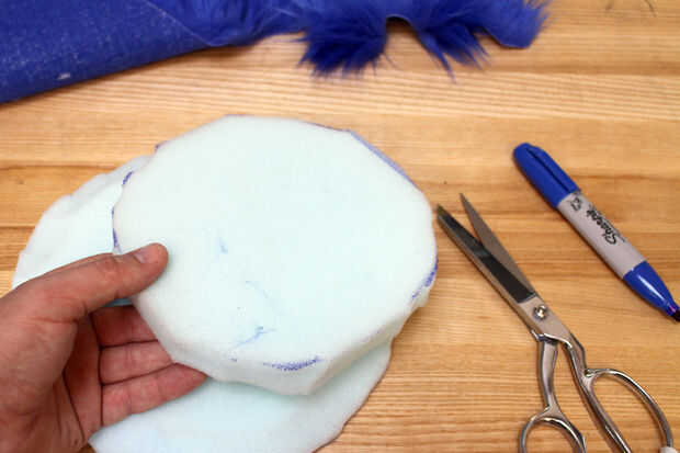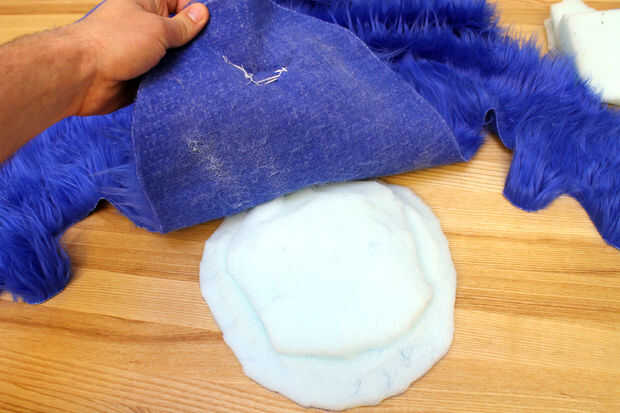 Tomando una página de alfombras de piel de animales reales, decidí añadir algún tipo de estructura a mi alfombra de piel de monstruo para realzar la mirada. Usando espuma flexible densa para hacer una cabeza, iniciado por la fabricación en forma de un disco de corte y biselado de los bordes. Luego cortar una forma de disco más pequeña y usa pegamento aerosol para les pegan. Esta forma de domo aplastado sería la estructura de cabeza suave de mi alfombra de monstruo.