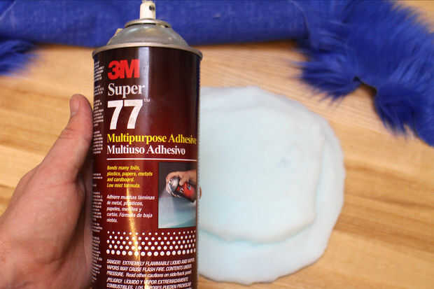 Los discos de espuma luego fueron pegados en la parte inferior de la cabeza con adhesivo aerosol más.