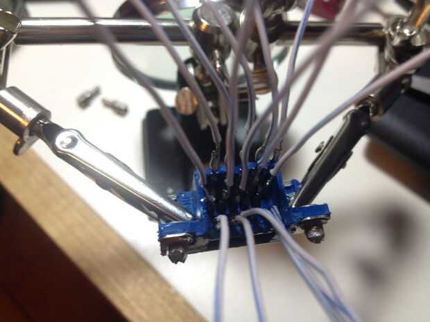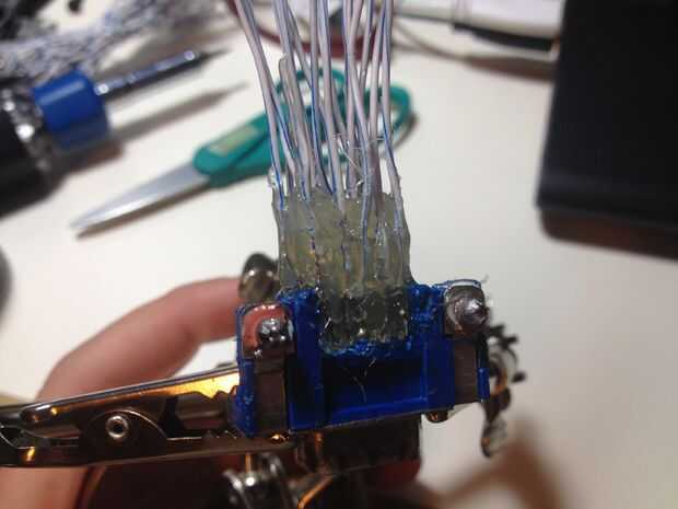 Empieza por soldadura a cada una de las longitudes cortas de cable a cada pin en la parte posterior del puerto VGA. Asegúrese de que no pernos, soldadura, o los cables se toquen y cubrir la parte posterior con pegamento caliente a aíslelo y asegúrese de que ninguno de los cables o pernos de moverse.