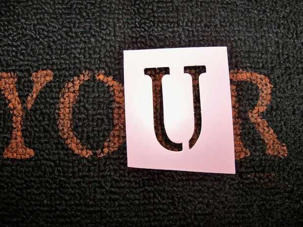 5) lentamente levante su plantilla directamente fuera de la alfombra. Continuar con esténcil, teniendo cuidado de no manchar las cartas que ya hayas completado.