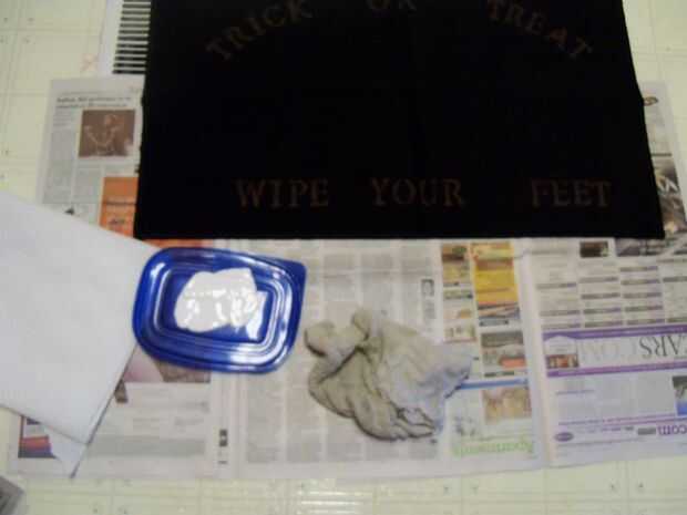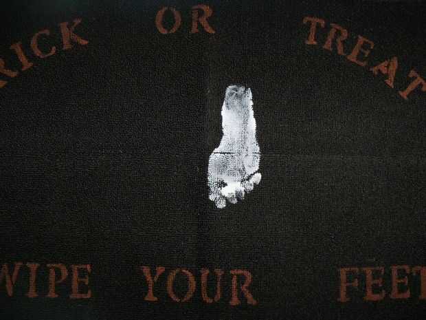 6) Tire de su pie derecho para arriba de la alfombra, y tendrás tu primer "fantasma". Limpiar el pie del niño con los trapos mojados para salvar sus pisos! Deje secar y repita con el otro pie.