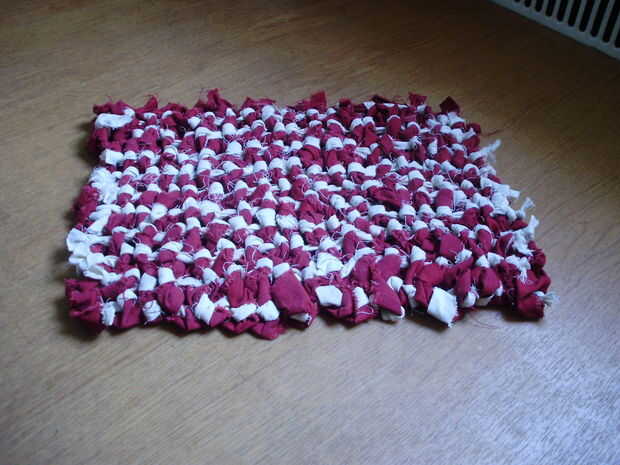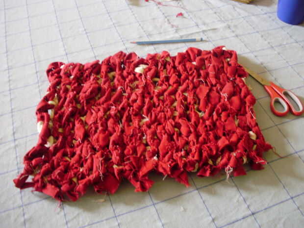 Así, un tapete hecho de atar y de colocación es rápido y muy fácil de hacer. Sé que éste parece un poco bruto pero fue mi prueba uno solo para ver si funcionaría.