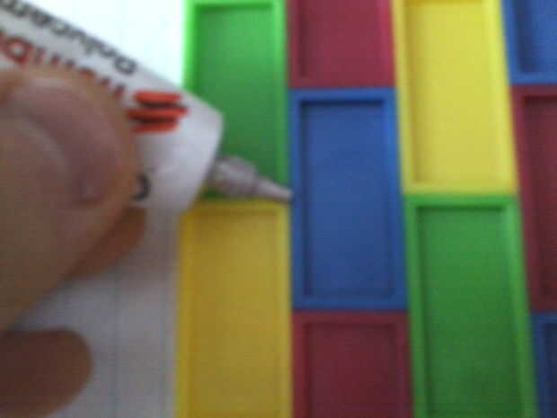 Entonces poner un poco de pegamento en cada esquina del diseño en cada lado.