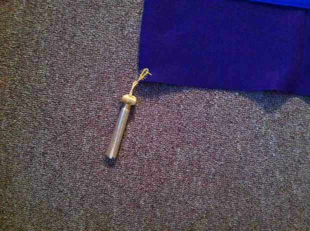 1. Coser las borlas en cada esquina. Ida y vuelta muchas veces fui puesto que estaría utilizando esto en una clase de 20 cuatro + cinco años de edad