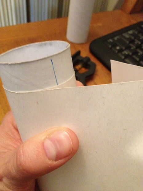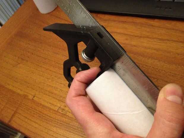 Tome ahora el círculo y pone sobre el extremo del tubo y marca la profundidad de 1/4 puntos. Entonces use su escuadra fiel y dibuje líneas abajo del tubo un poco en ambos los puntos que marcaste. Decidir cuánto desea izquierda al final de los "registros" y envolver un trozo de papel en el registro de esa distancia desde el extremo y trace el borde del papel alrededor del tubo.