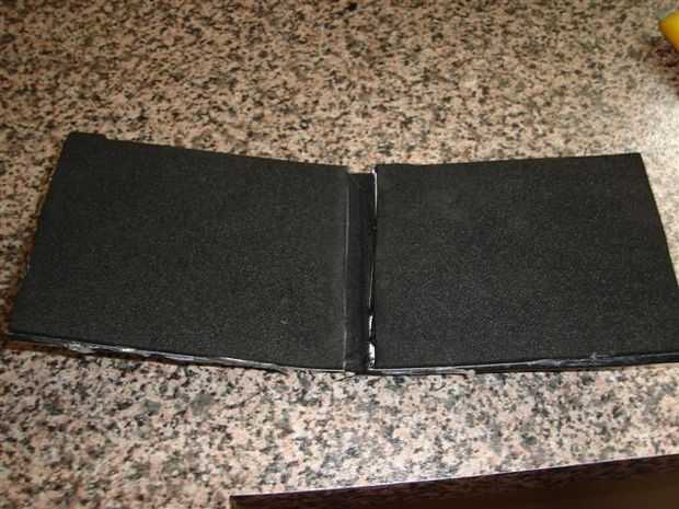 Pegar la pieza izquierda en la pieza de forro (del pedazo detrás) con forma de L de pegamento en el borde asegurándose de que la brecha media.