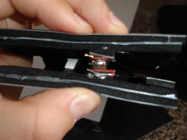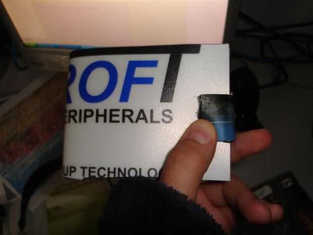 El segundo se debe pegar una tira de cojín de ratón con laterales de plástico cerca de 1 pulgada o 3cm de ancho en la parte posterior en el borde que es suficiente para llegar al otro lado (segunda foto). Luego pegar cada pedacito de clip por lo que se unen firmemente.