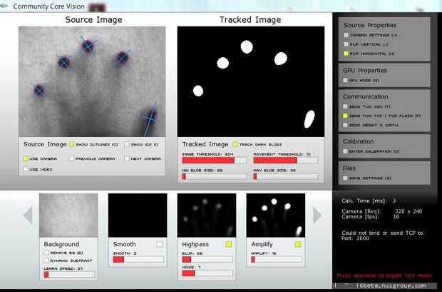 La configuración del software CCV debe ajustarse para obtener una imagen derecha seguida de sus extremidades del dedo (ver imagen de arriba).