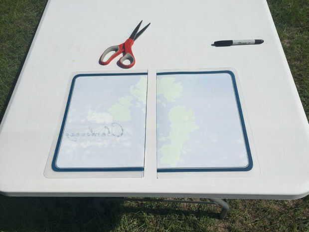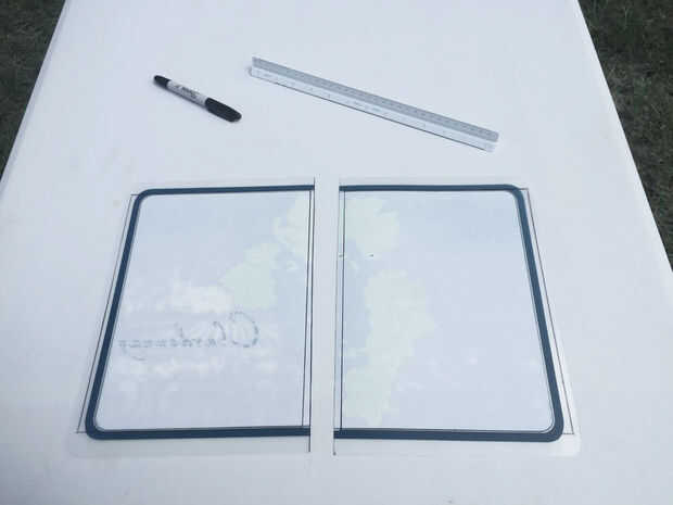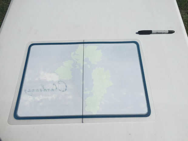 • Utilice un borde recto y un marcador para marcar el centro de la estera y cortar en dos a lo largo de la línea.