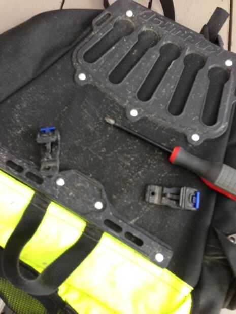 Plan B fue quitar los clips del estante de un pannier existente por taladrar los remaches que típicamente sosténgalos juntos. De las otras maletas que tengo, parece que taladrar los remaches desde el interior de la maleta, usando una broca que es ligeramente más grande que el interior del remache sería la forma más fácil de hacerlo.
