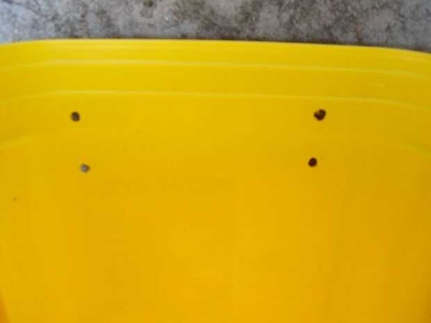 perforar el plástico y luego coloque la madera donde será (por el lado del cubo), marca a través de los orificios y taladro.