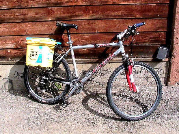 Yo no soy la primera persona en un cubo en mi bicicleta, o el primero en tratar de vender cubos como una alforja bicicleta del gancho, pero he venido para arriba con el simple sistema de seguro. He visto cómo otras personas enganchan cubos en sus bicicletas y trataron de copiarlos, pero quería algo que es estable, fácil de quitar y no comprometer el cubo por orificios de perforación. Un día se me ocurrió la idea, todo lo que necesita para sostener un cubo en mi estante de la bici es un simple alambre doblado!