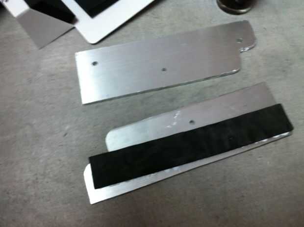 Optamos por tomar unos 10 dólares en chatarra 1/4" aluminio que tenía que poner alrededor de mi tienda/garaje y fabricar un par de placas para actuar como espaciadores y para tener en cuenta el hecho de que al lado de mis compañeros de motocicleta no es completamente plana, por lo que no había manera la munición puede podría empernar justo al lado de él sin ser un total desastre.