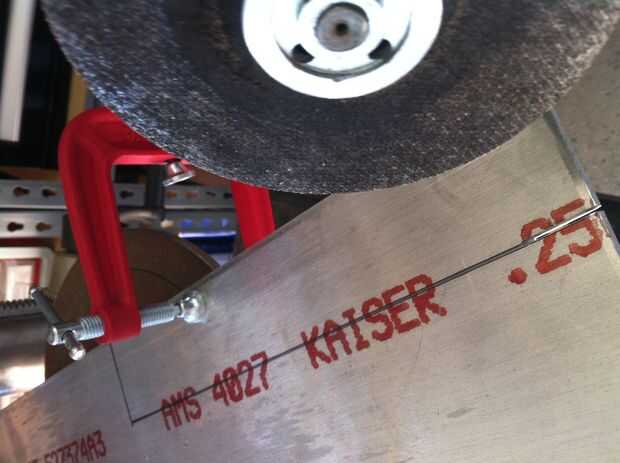 Una vez que se cortan los dos pedazos, uno situado a un lado por un tiempo. Tomar el otro y ponerlo contra la moto otra vez. Usar marcador trace las áreas donde usted necesita para eliminar algunos metales con el fin de conseguir planos de un ataque contra tu moto como sea posible dado su curvatura natural o superficie protuberante manteniendo un diámetro de 1" de metal alrededor de lo que se convertirá en los agujeros de dos perno. Moler a ese exceso del metal con una esmeriladora de banco o muela en su amoladora angular.