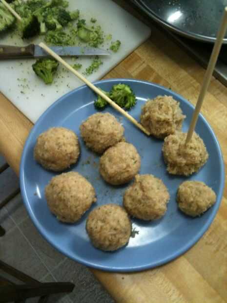 2. Inserte palillos directamente a través del centro de la albóndiga.