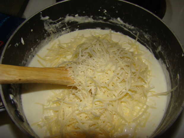 Agregue el queso parmesano y revuelva hasta que el queso se haya derretido y la salsa haya espesado.
