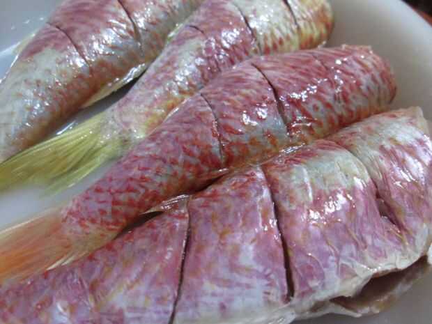 Escala, limpiar hacia fuera de la cavidad abdominal, quitar la cabeza y las aletas pectorales