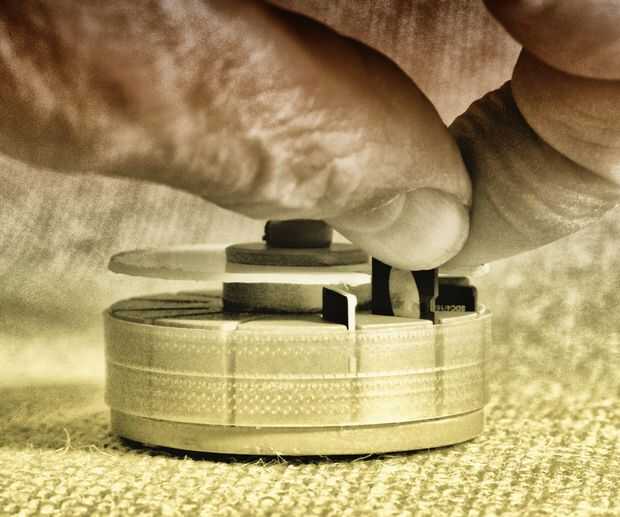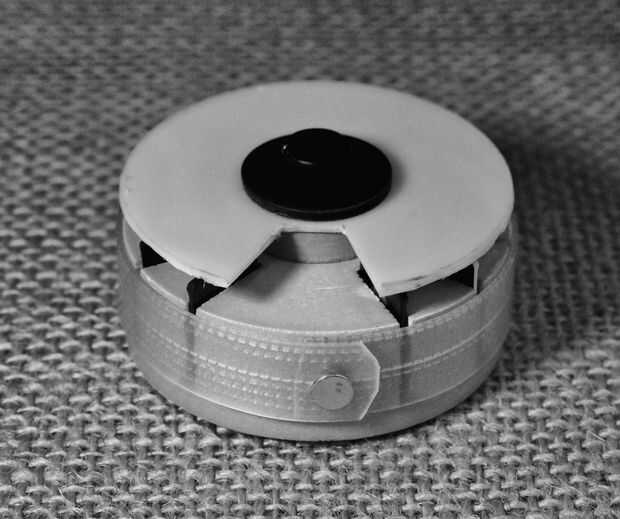 Un disco de plástico en la parte superior mantiene las cartas de escapar por su cuenta. Una ranura ancha en el disco de plástico facilita la eliminación y la inserción de una tarjeta a la vez girando el disco en la posición deseada. En la tercera foto el disco esté en la posición "bloqueada", con todas las cartas se mantiene firmemente en su lugar.