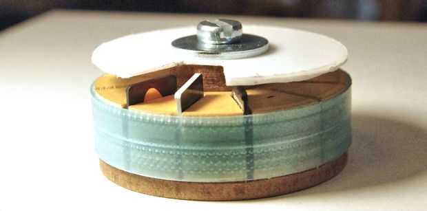 Dispone de un trozo de cinta de plástico rígido utilizado para proteger parcelas alrededor del disco ranurado de madera medio para guardar las tarjetas en el lugar. Por supuesto otros materiales en lugar de la cinta del paquete también se puede utilizar, por ejemplo delgada pero fuerte de cartón.