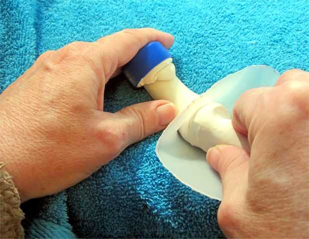 Poner la tapa y smoosh la arcilla en ella para que esté completamente llena
