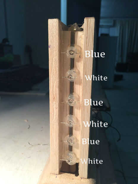 Cada lado del signo, excepto la parte inferior, conseguirá 6 LED. 3 blancos y 3 azules. Ver imágenes
