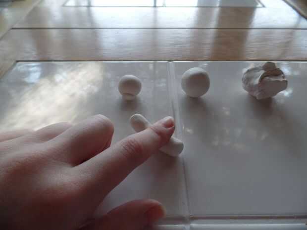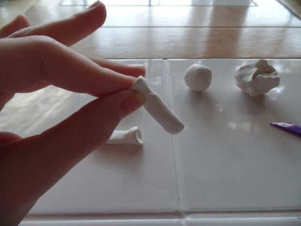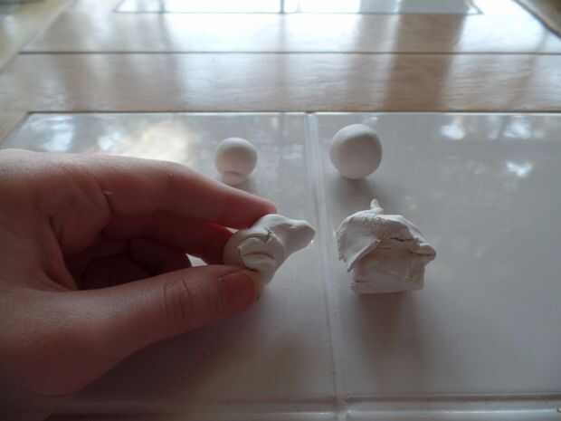 Ahora vas a tomar un pedazo más grande de la arcilla adicional que estaba en el último paso y enróllelo en forma de registro y cortar 2 piezas separadas de la forma de registro. Empezar a hacer una copa como la forma en la parte inferior de cada uno de logs.when de arcilla que se hacen con dos de las orejas y hacer la forma de la taza debe parecerse a la imagen. Luego suave las orejas sobre la cabeza para que no puede ver donde se ponen. Debe parecer como en la foto.